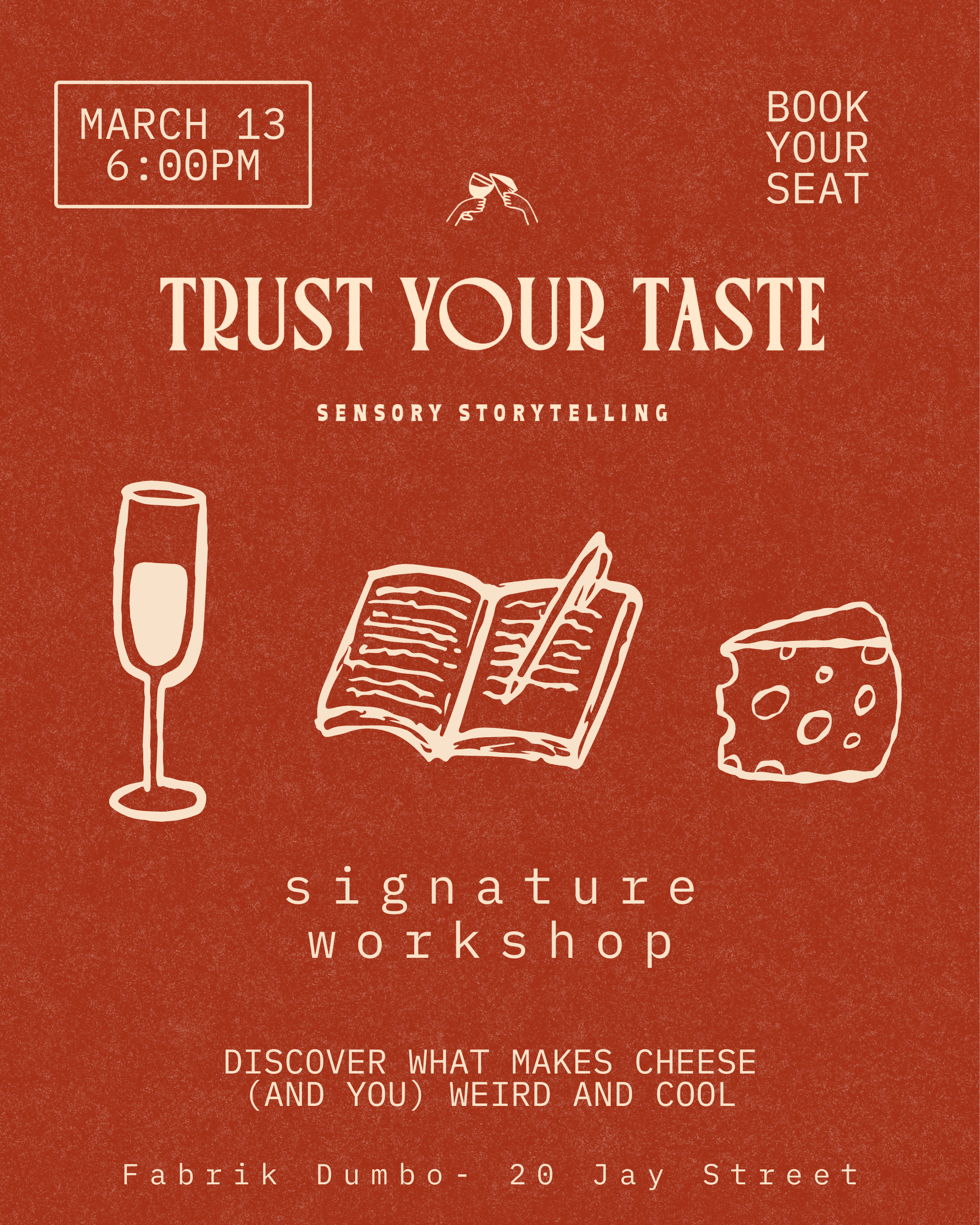 The ultimate keeper of sensory memories, the Trust Your Taste journal helps you capture your favorite experiences of food and beyond with it's proprietary DANCE method. It even includes a cheese log with lists and examples of descriptive words to help drop you into getting the expertise of your own experience out of your mind, and onto the page.